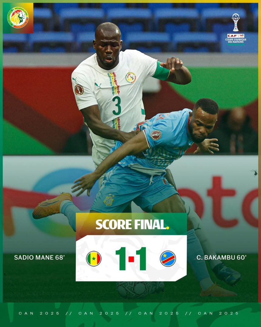 XALIMANEWS: Le choc entre le Sénégal et la République démocratique du Congo (RDC) s’est terminé sur un score nul (1–1), après une rencontre riche en intensité et en émotions.
